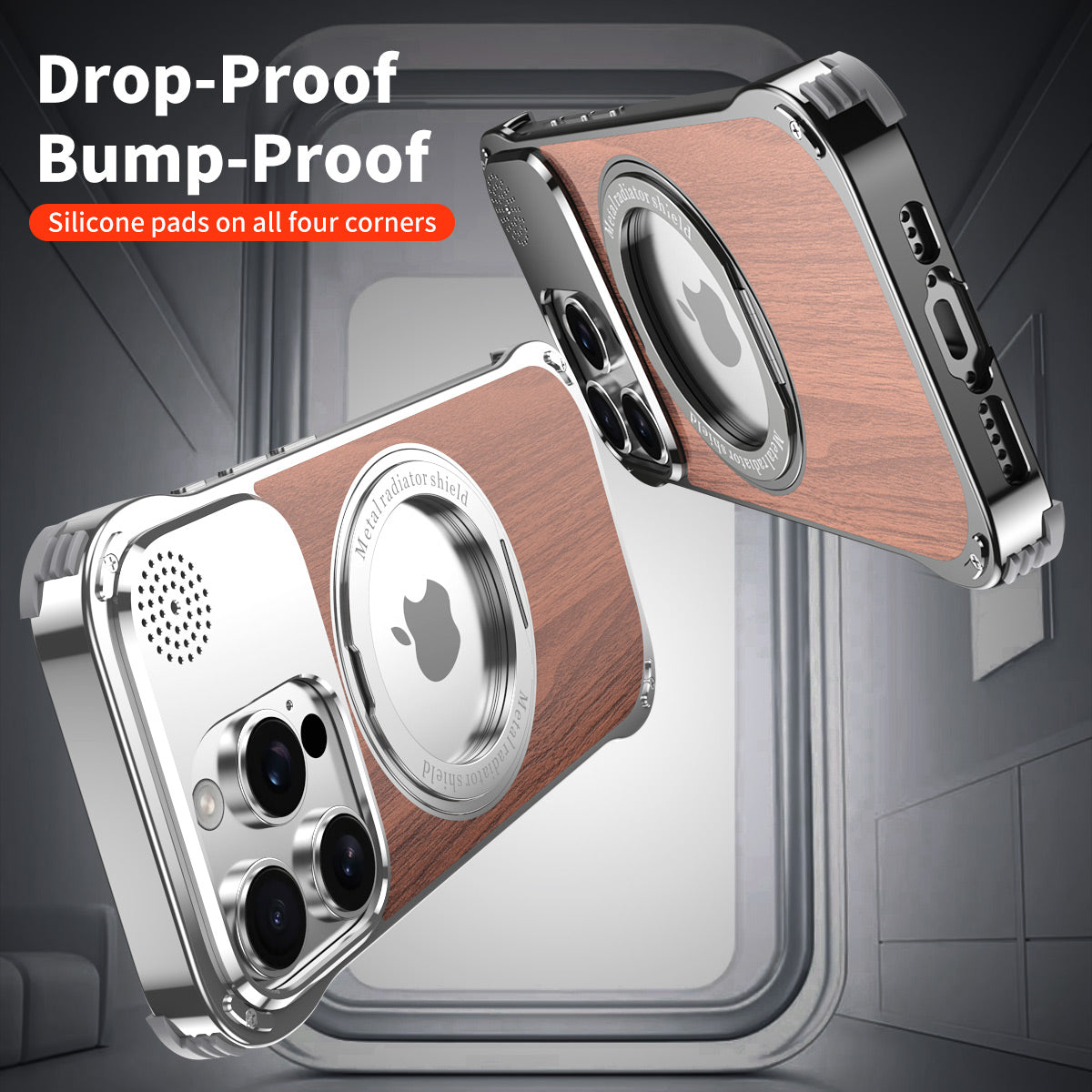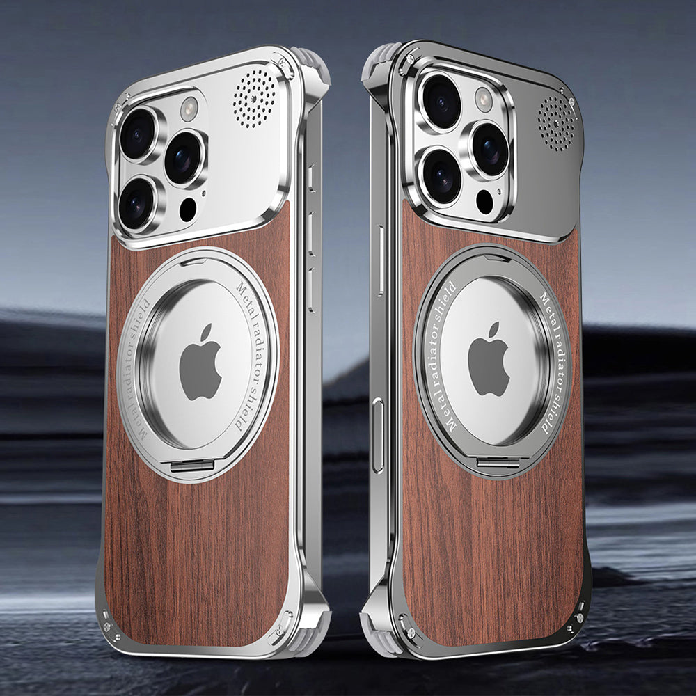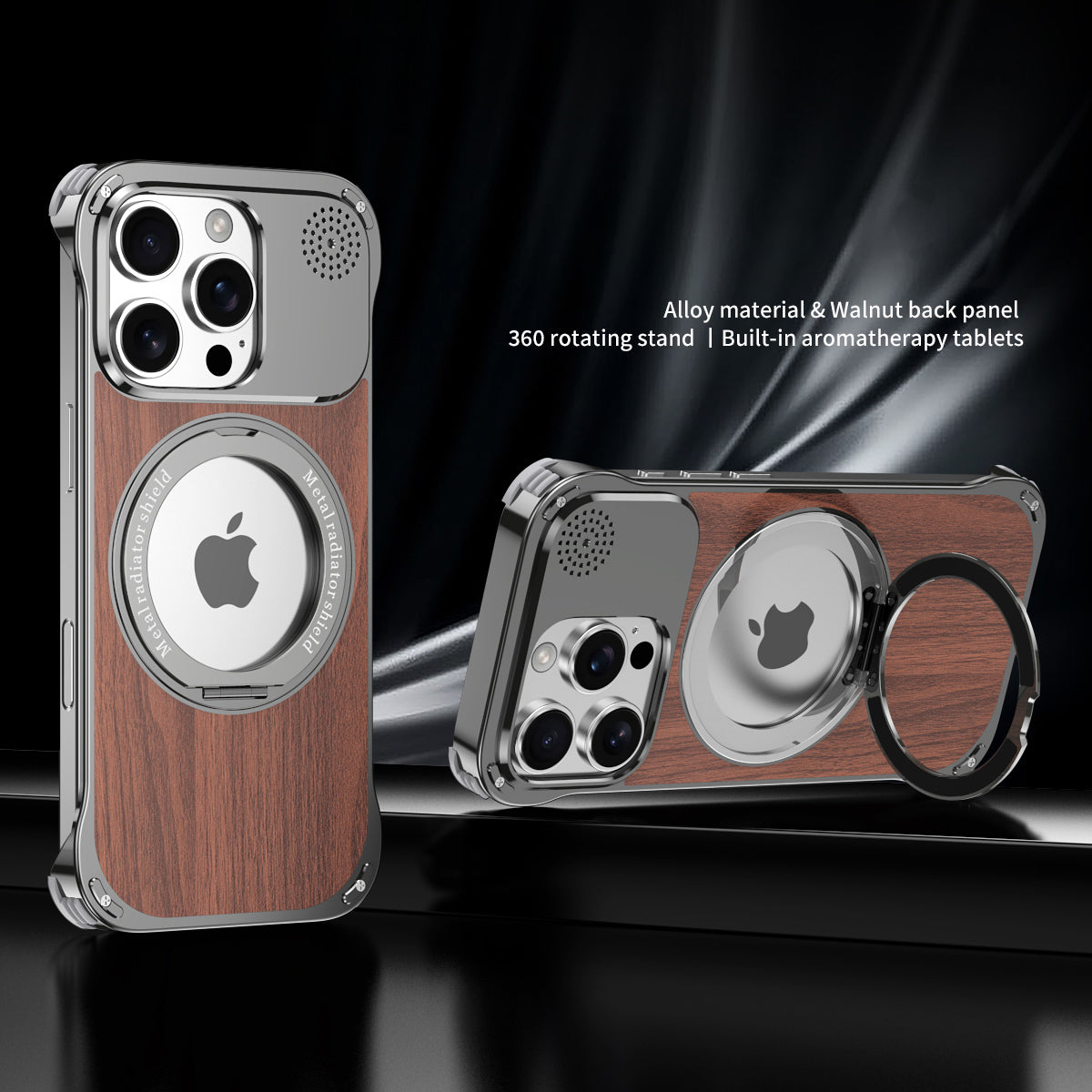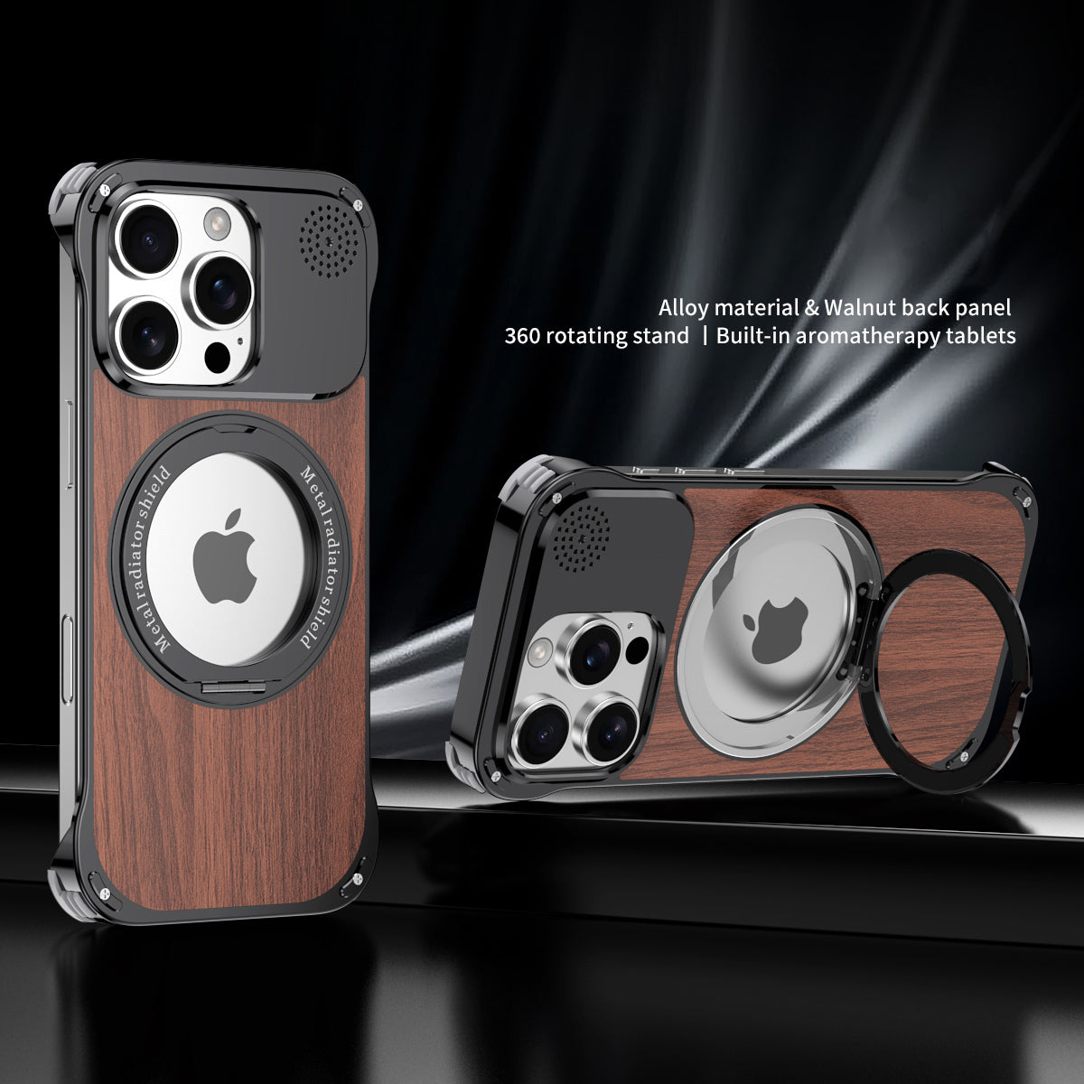 Armor King Aromatherapy MagSafe Pivot Ring Stand Walnut Wood + Metal Case Cover