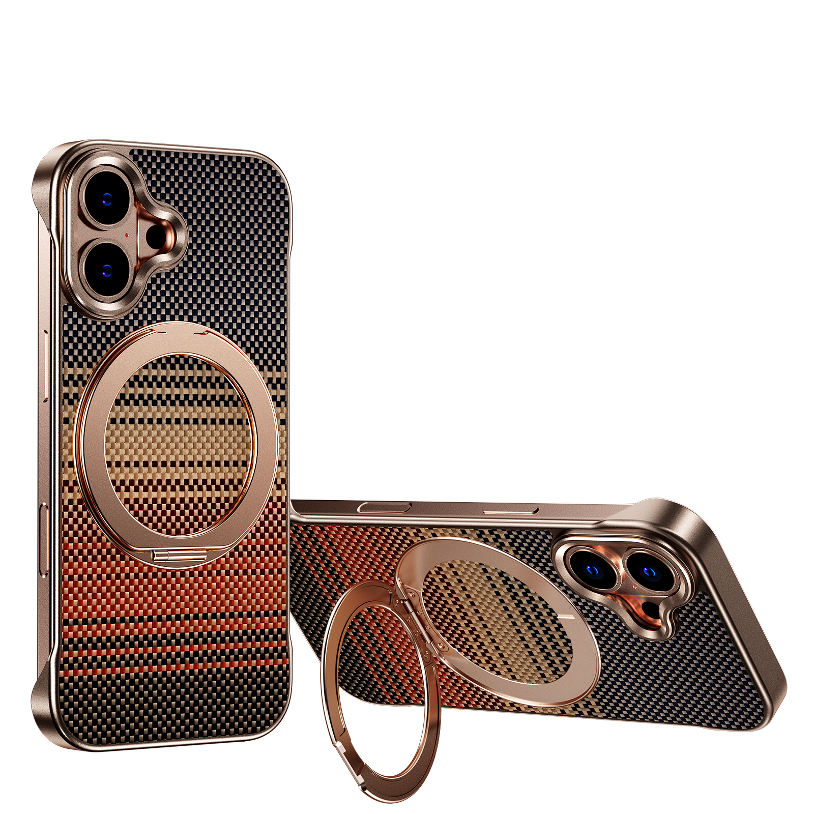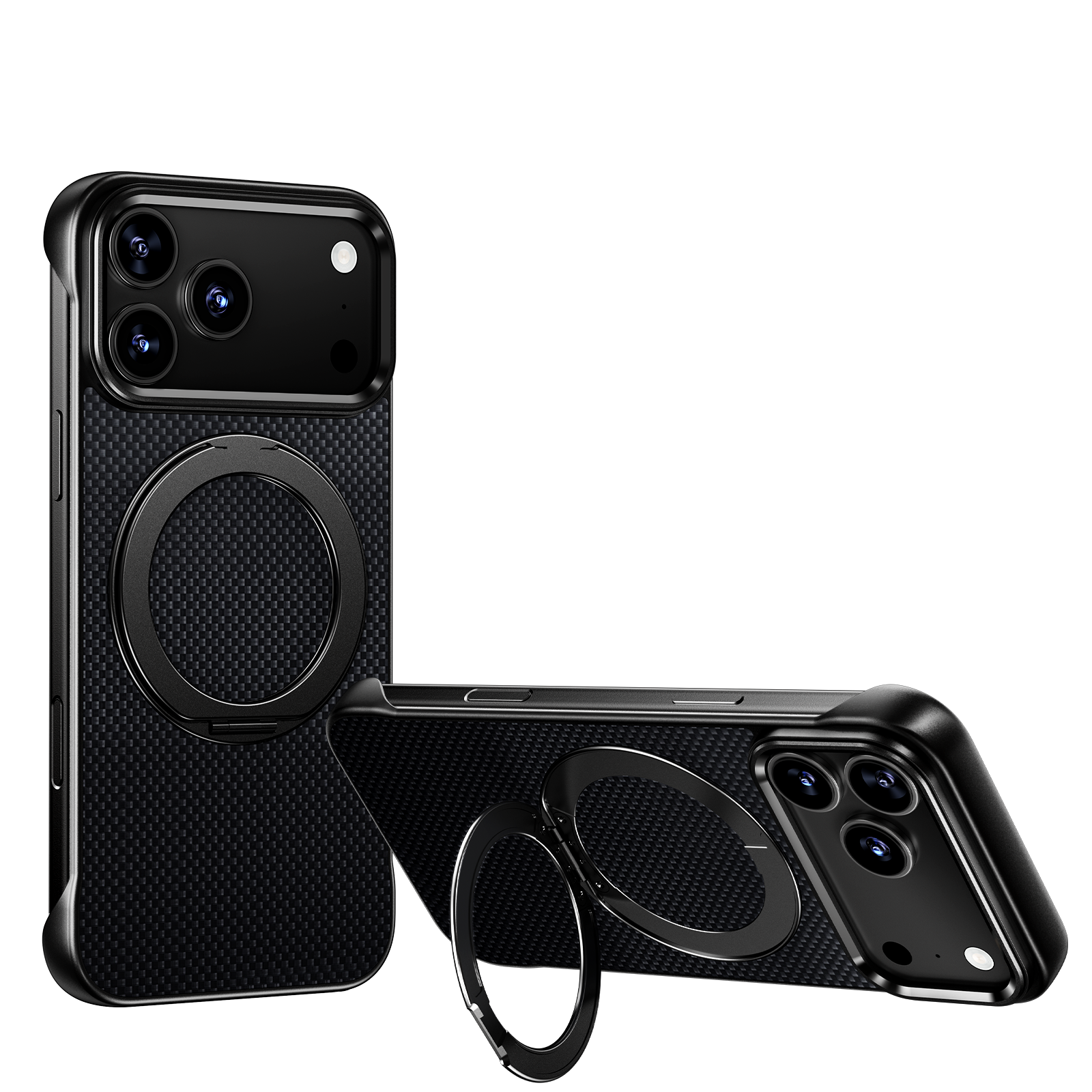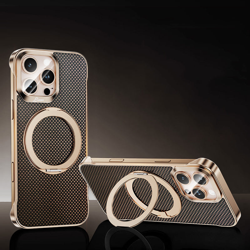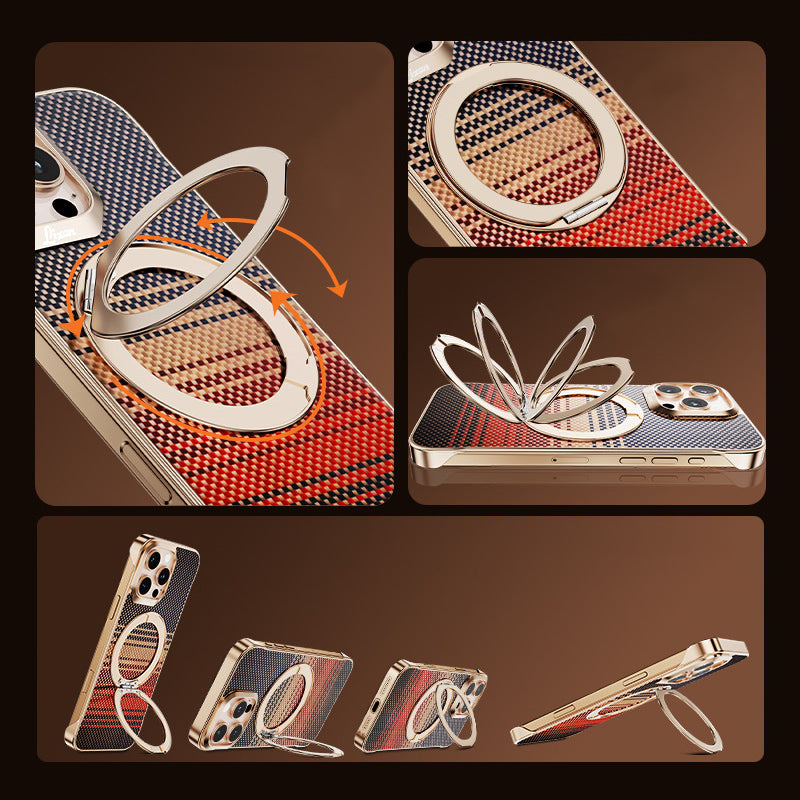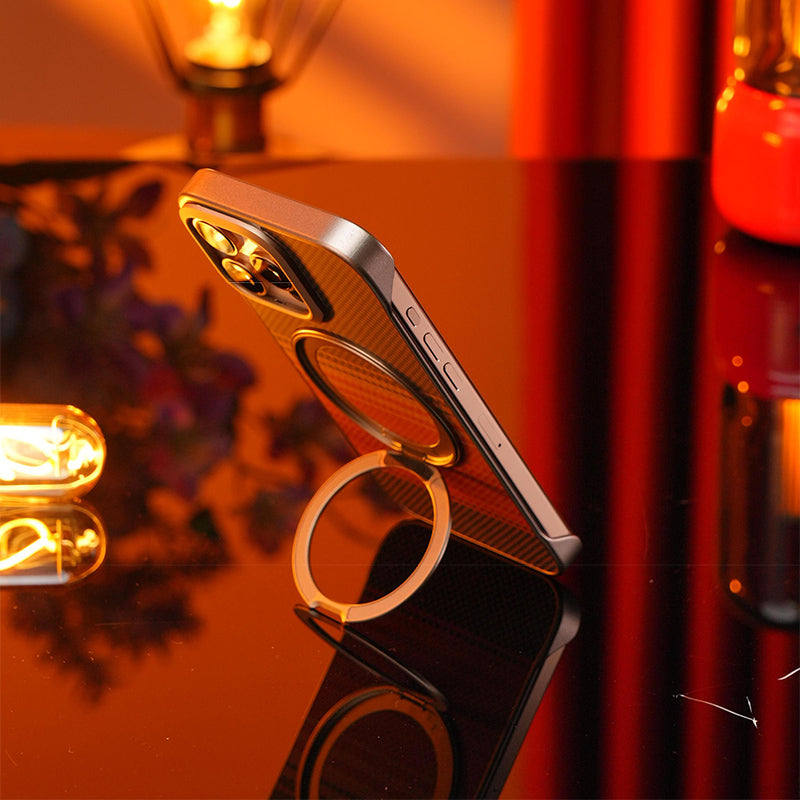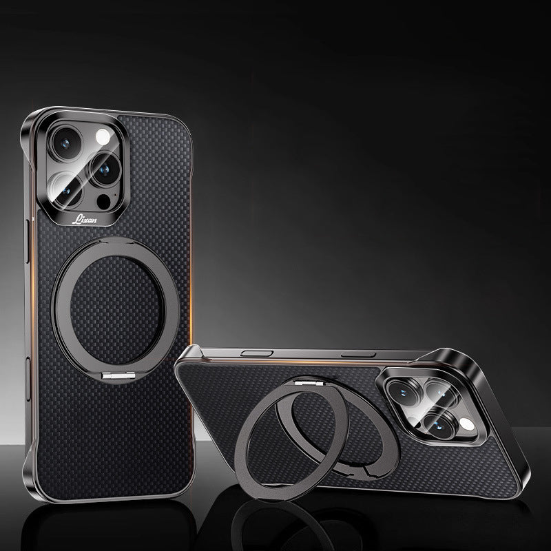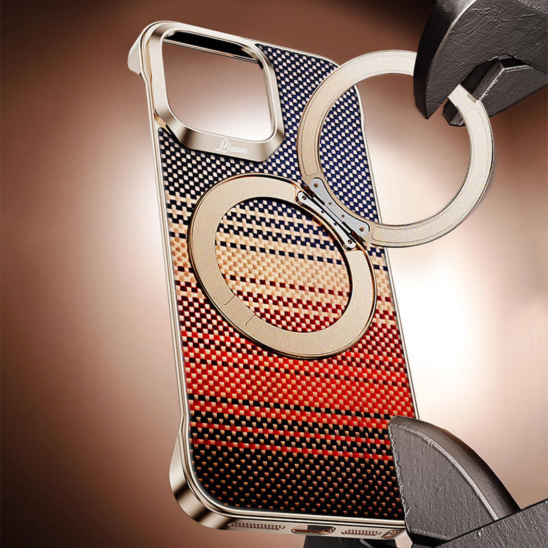 Armor King Bezel-less Aramid Fiber MagSafe Pivot Ring Stand PC Back Case Cover