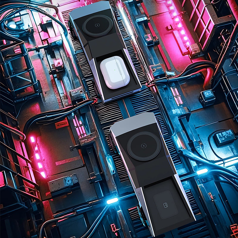 - Cyber Energy Station, a functional wireless charger born for technology. Electric rotation | Hidden charging | Technological atmosphere light