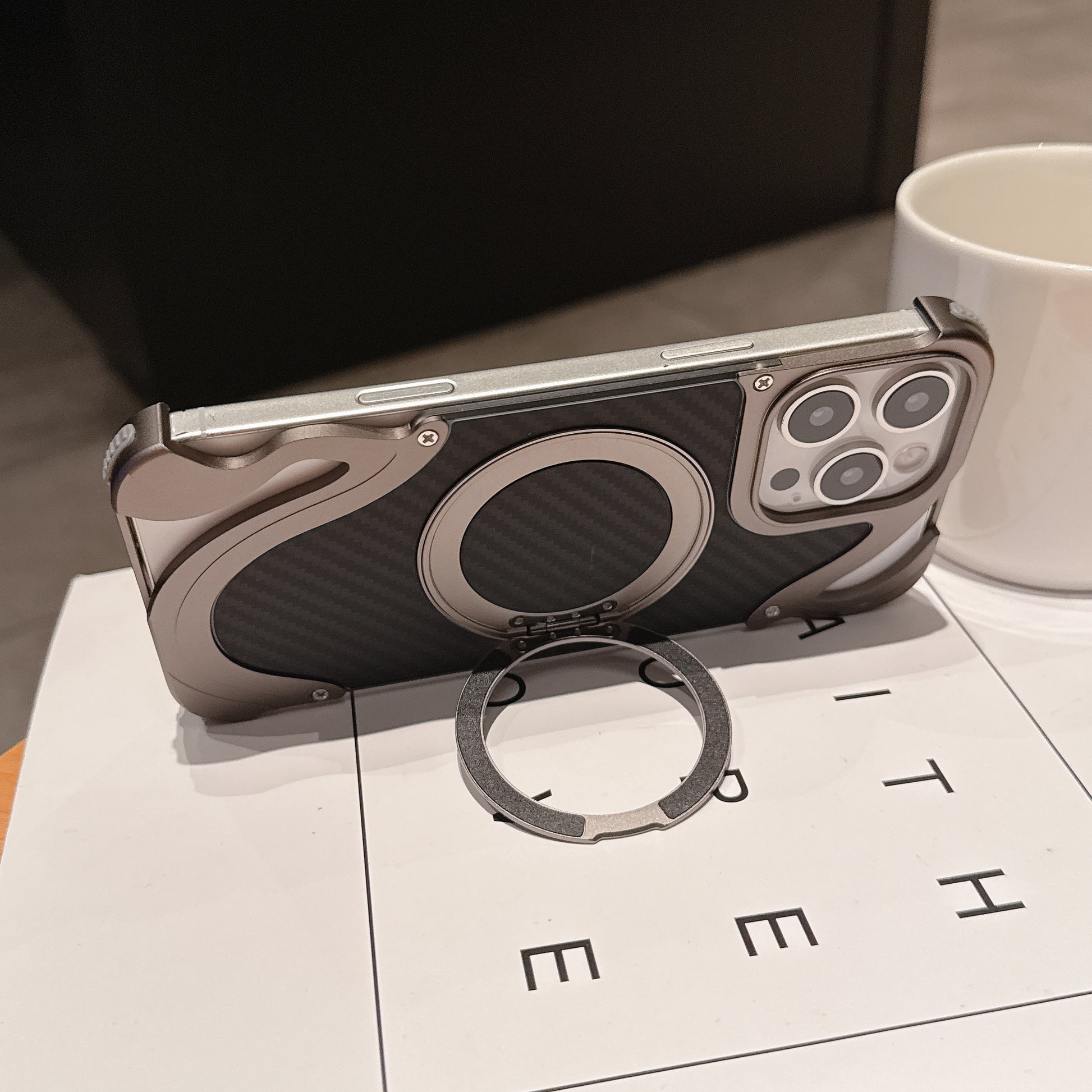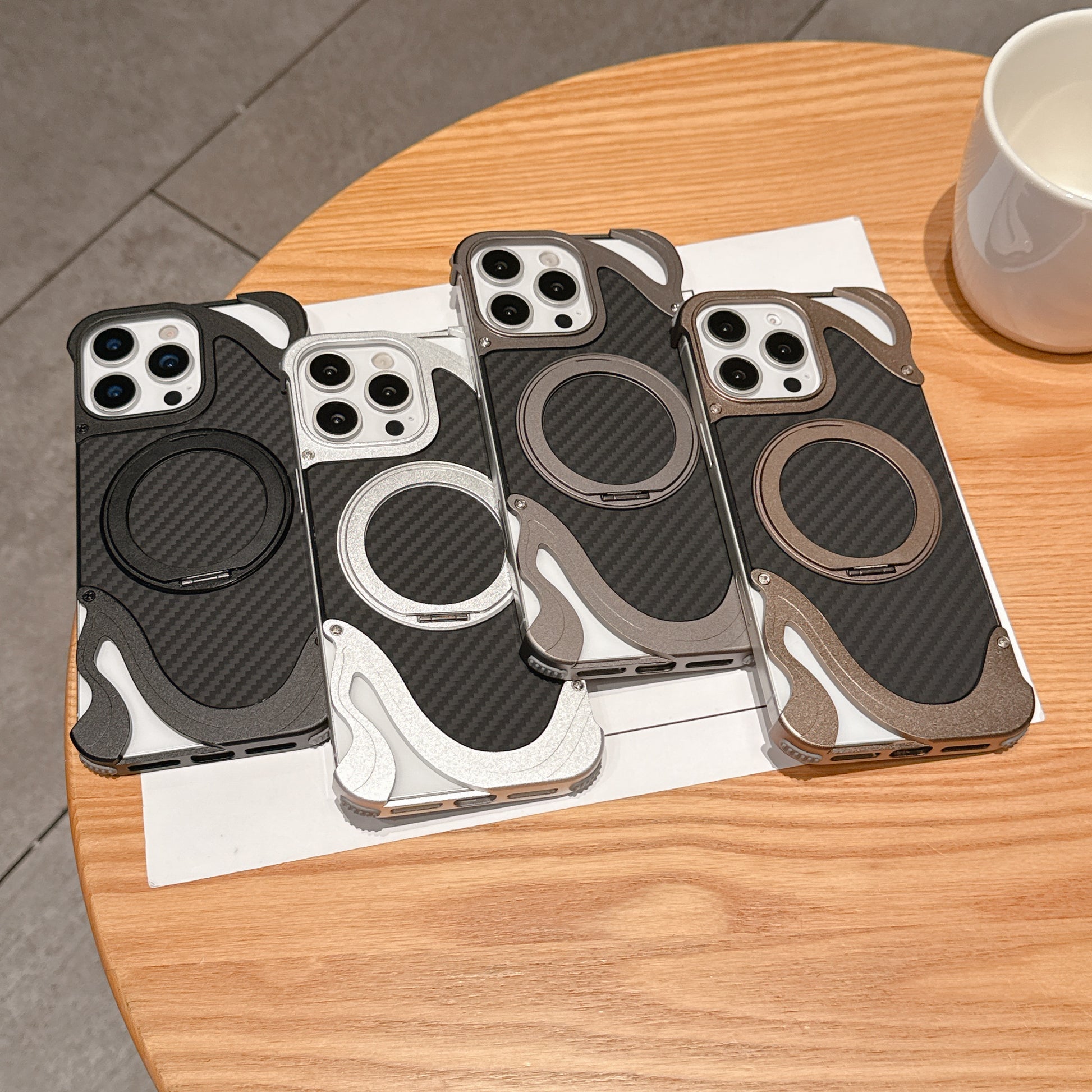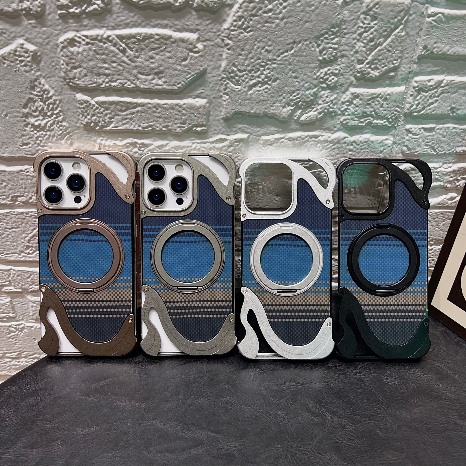 Armor King Dolphin Bezel-less MagSafe Pivot Ring Stand Aramid Fiber Metal Case Cover