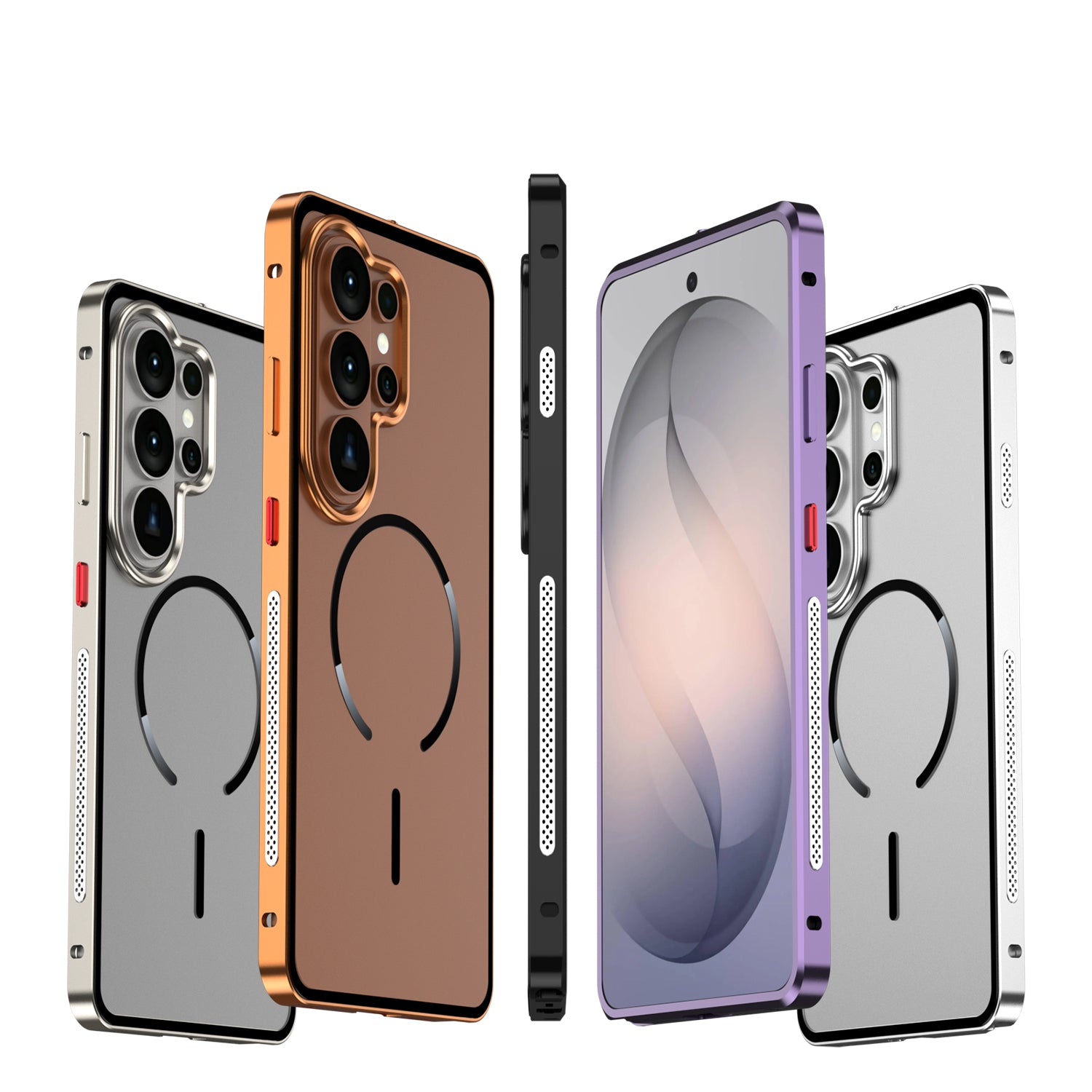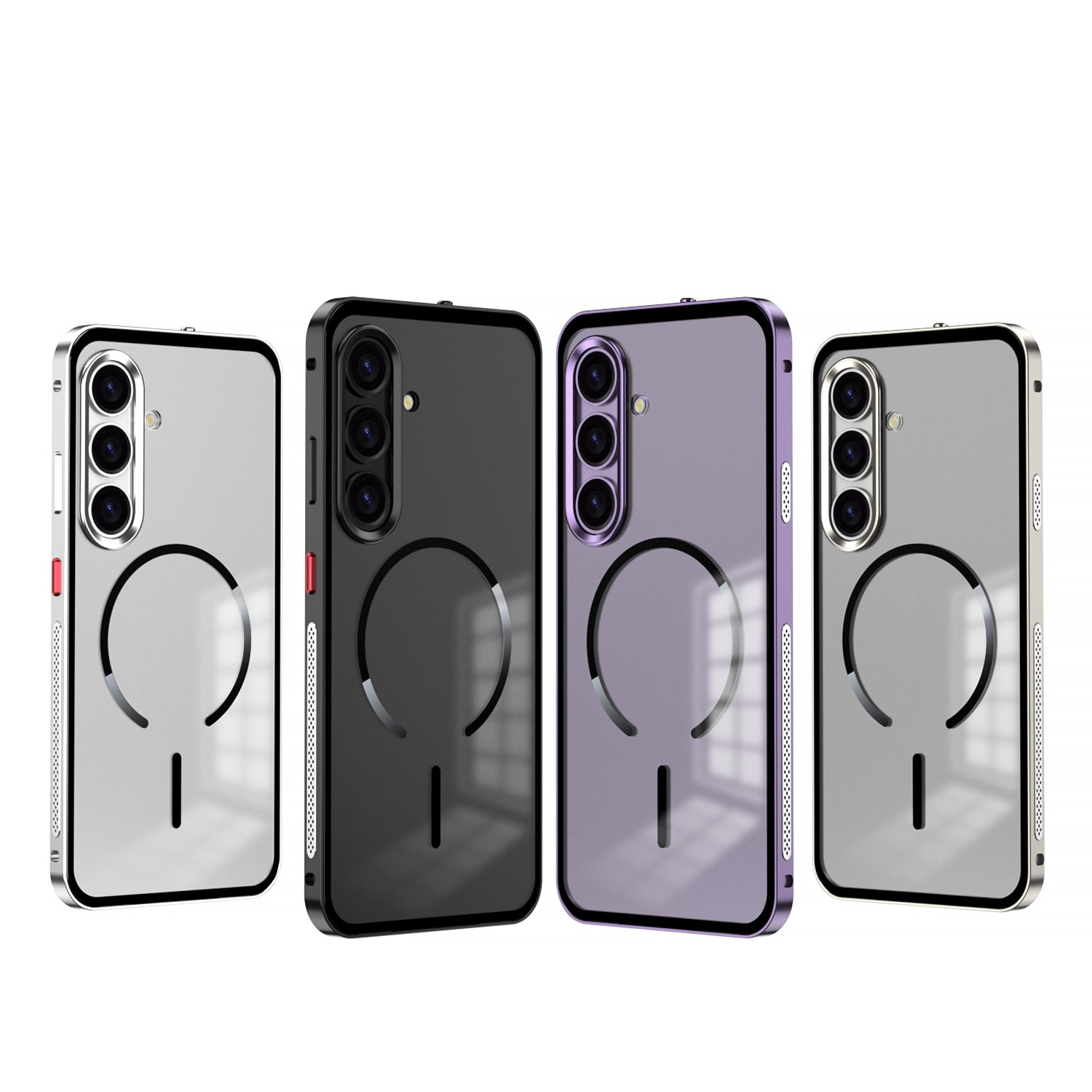 Armor King MagSafe Elastic Buckle Heat Dissipation Metal Bumper Frosted Acrylic Back Case Cover