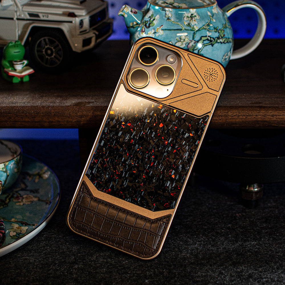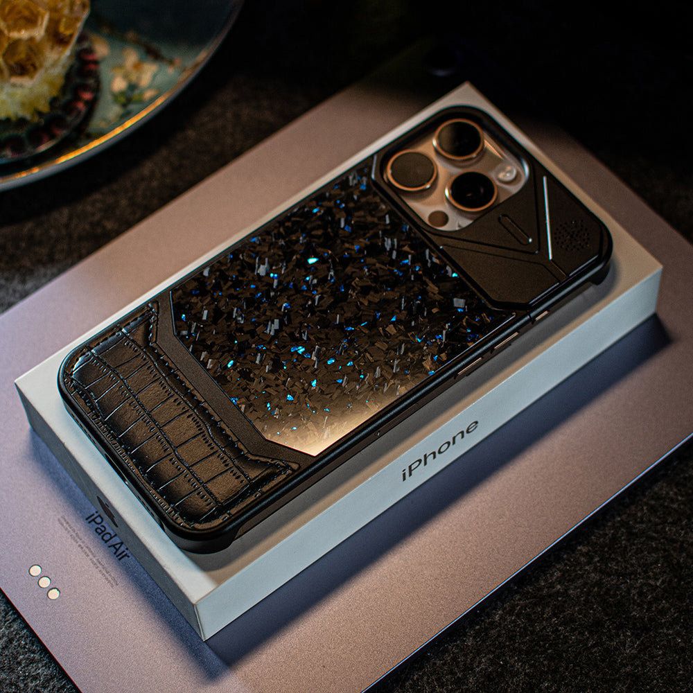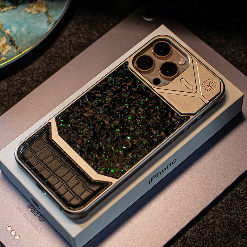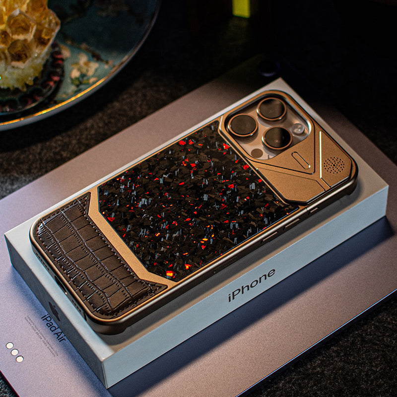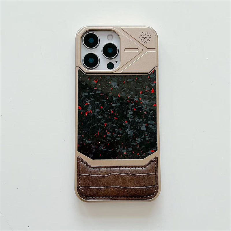Armor King MagSafe Forged Carbon Fiber + Leather + Aluminum Heat Dissipation Aromatherapy Protective Cover Case