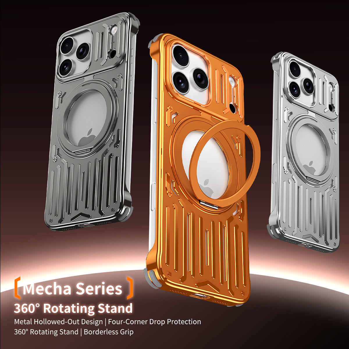 Armor King Mecha MagSafe Pivot Ring Stand Air Cushion Shockproof Metal Case Cover