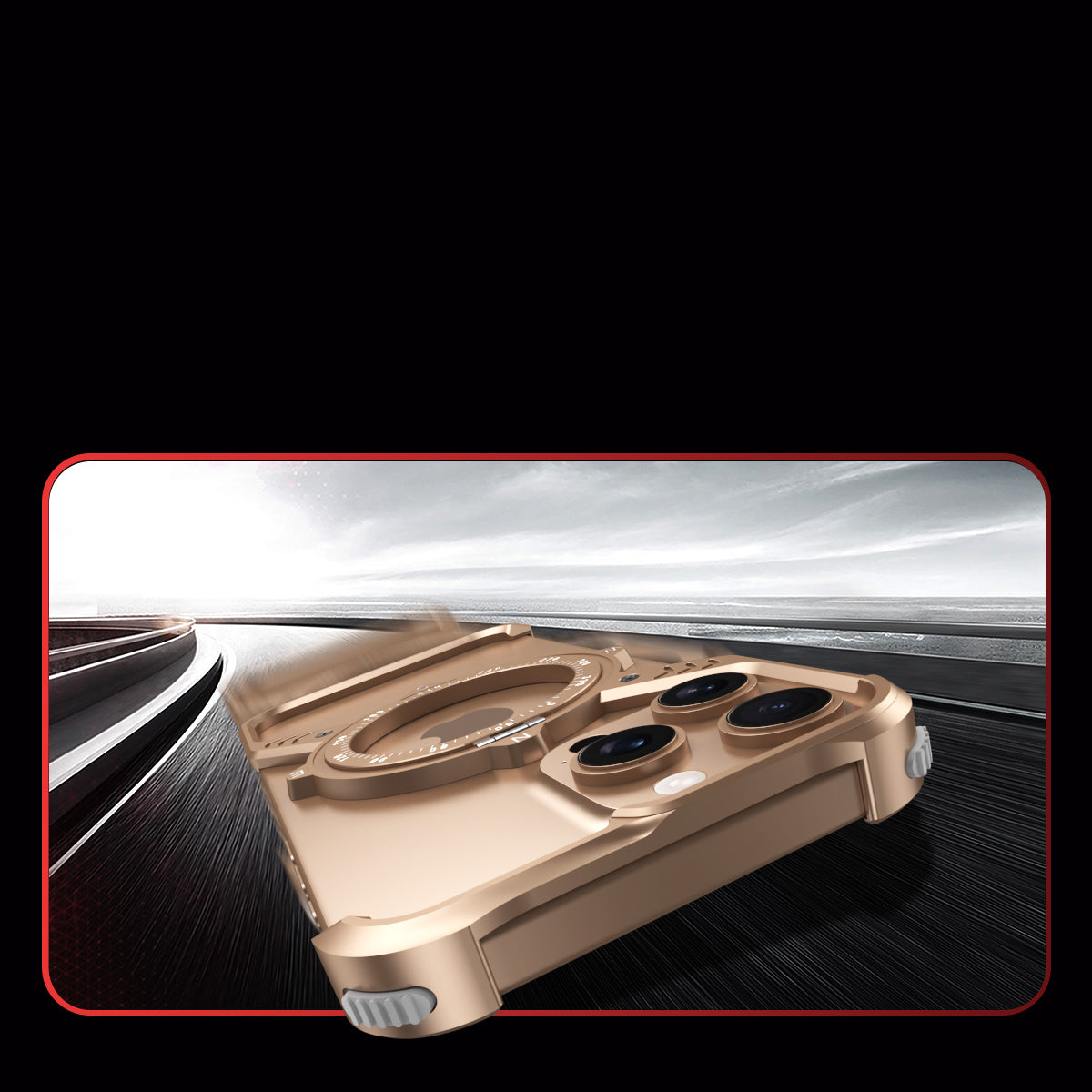 Armor King S Mechanical Gear MagSafe Pivot Ring Stand Air Cushion Sports Metal Case Cover