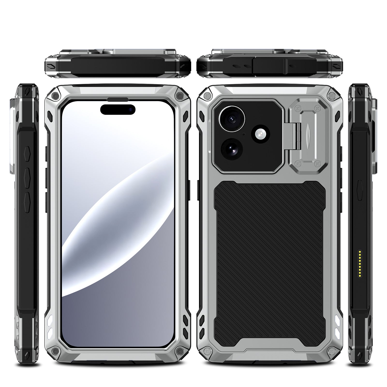 - SCRATCH-RESISTANT DESIGNED FOR OUTDOORS: Made with aluminum metal and silicone that fits your phone perfectly and is easy to install and remove. Offer high impact protection. Built-in rubber port plugs and button covers to help keep dust and water out.