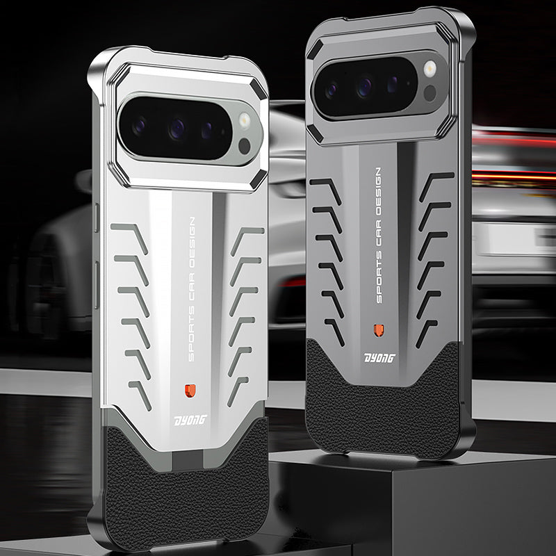 Armor King Sports Car Elastic Buckle Contrast Color Frameless Metal + Leather Case Cover for Android