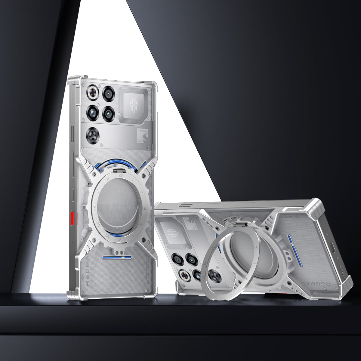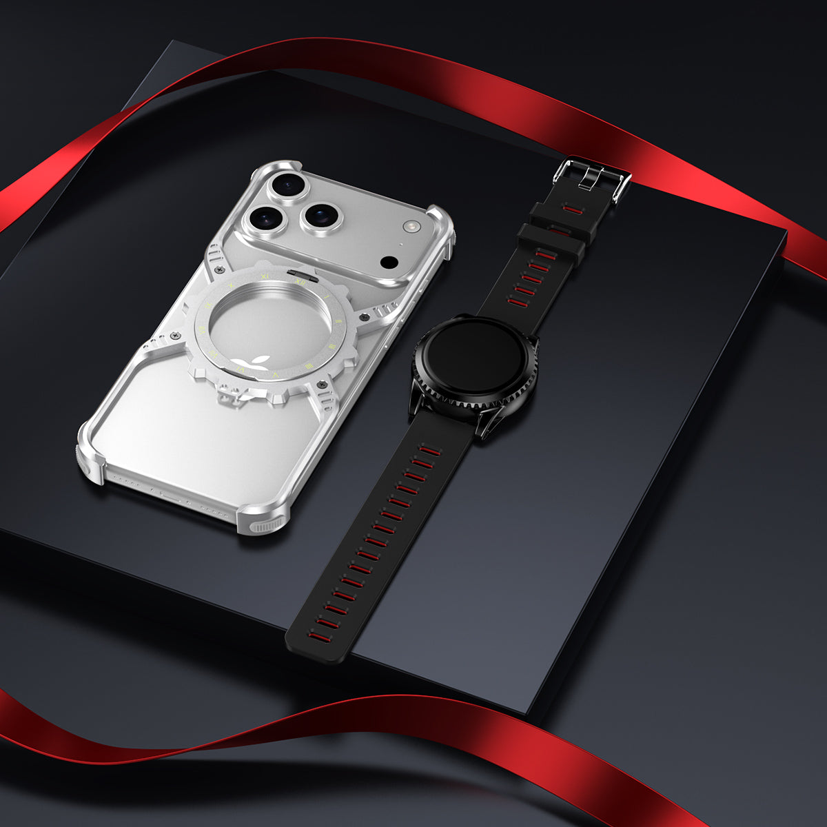 Armor King X Mechanical Gear MagSafe Pivot Ring Stand Air Cushion Luminous Metal Case Cover