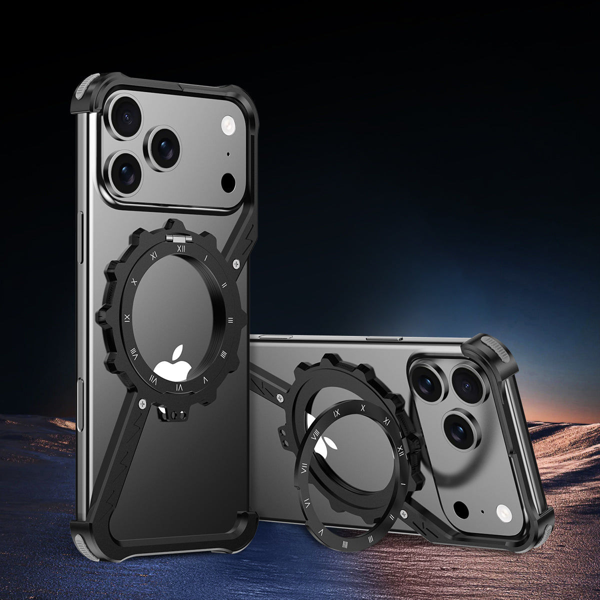 Armor King Z Mechanical Gear MagSafe Pivot Ring Stand Air Cushion Luminous Metal Case Cover
