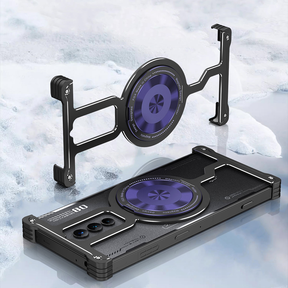 iy Bicolor Armor MagSafe Aluminum Alloy Kickstand Shockproof Metal Case Cover