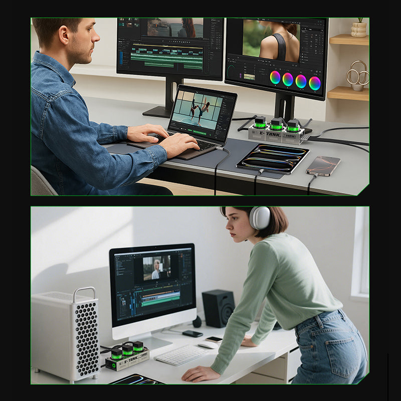 - Say goodbye to cable clutter with a single charging station that keeps your desk clean.