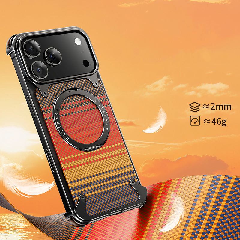 Oatsbasf MagSafe Pivot Ring Stand Air Cushion Artistic Carbon Fiber Texture Back Metal Case Cover