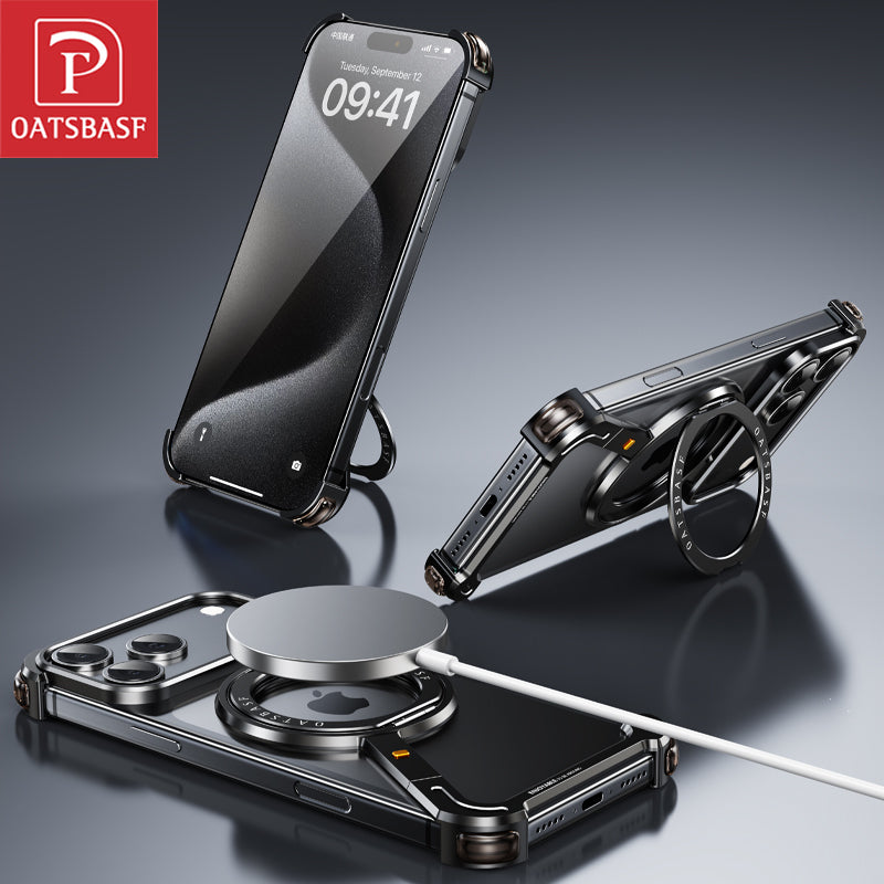 Oatsbasf Z MagSafe Pivot Ring Stand Air Cushion Metal Case Cover