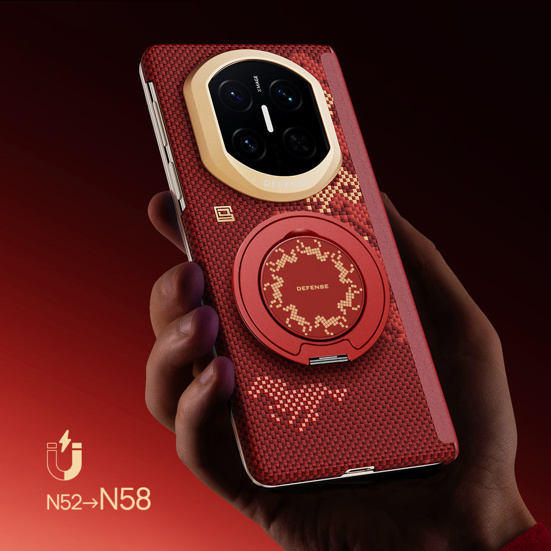 Based on the harmonious coexistence concept of Tai Chi, a double-horse magnetic ring is designed inside the protective case, with the two horses facing each other in an inverted position, symbolizing instant success!