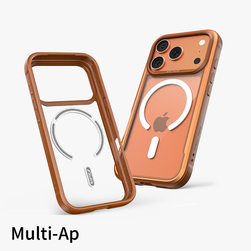 The Raptic Shield Pro Magnet case uses a ring of magnets creating the perfect alignment for fast wireless charging and secure connection. Using a combination of hard polycarbonate, DropShield Polymer and anodized aluminum, our Raptic Shield Pro Magnet case is the best protection you could ever want for your iPhone. We use machined metal to give your case a solid foundation that offers military-grade drop protection from up to 13 feet on concrete and a clear back to show off your iPhone. Inside you’ll find soft rubber that acts as shock absorption for falls, and insulated protection from the metal frame. Compatible with MagSafe Charger at the full 15W charging rate.